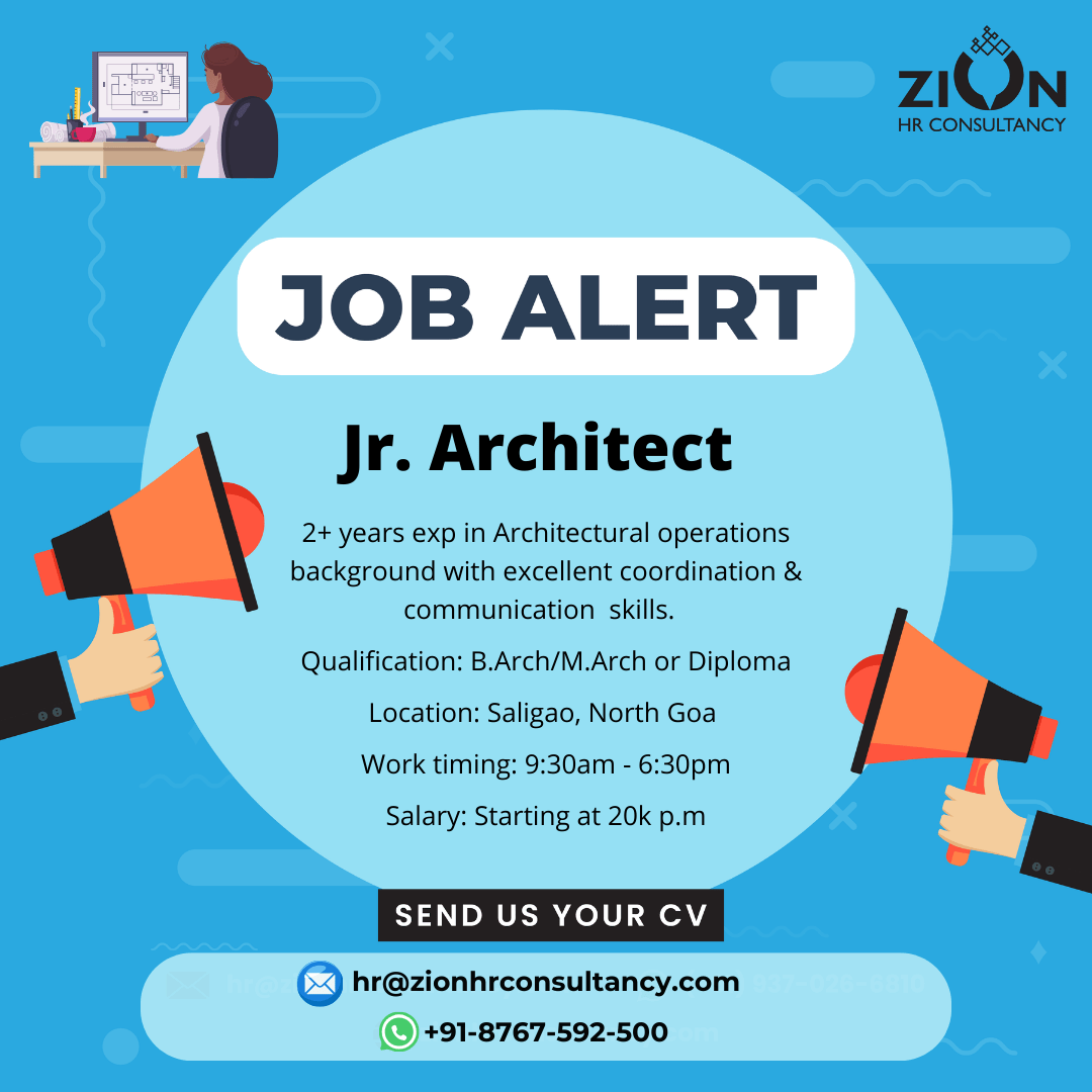 Location: Saligao, Goa Overview: As a Junior architect, your role is to work directly under the supervision of the Architect or Lead Designer and assist with the preparation of designs, completing construction documents, writing up building plans and the presentation of materials. Job Roles & Responsibilities: Job Requirements: Working hours: 9:30am – 6:30pm Salary Package:Continue reading “Architect”